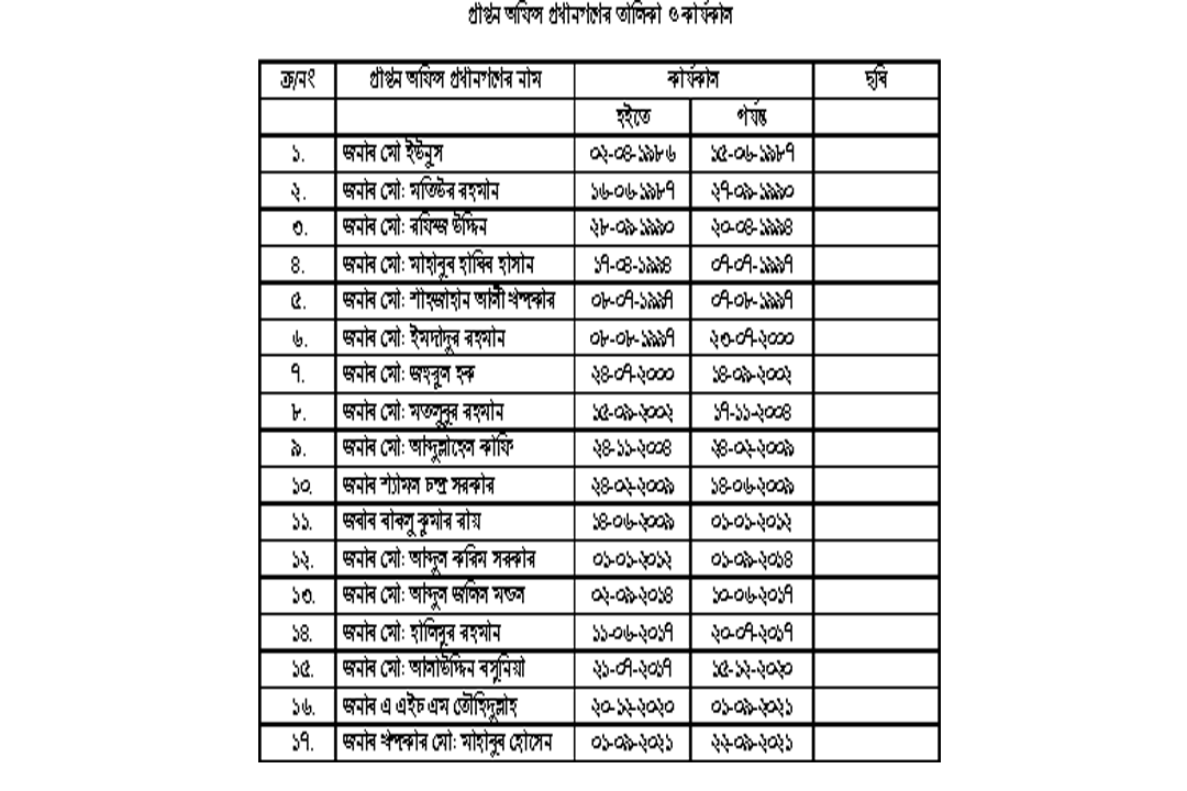 | জনাব মো: ইমদাদুর রহমান | ০৮-০৮-১৯৯৭ | ২৩-০৭-২০০০ |